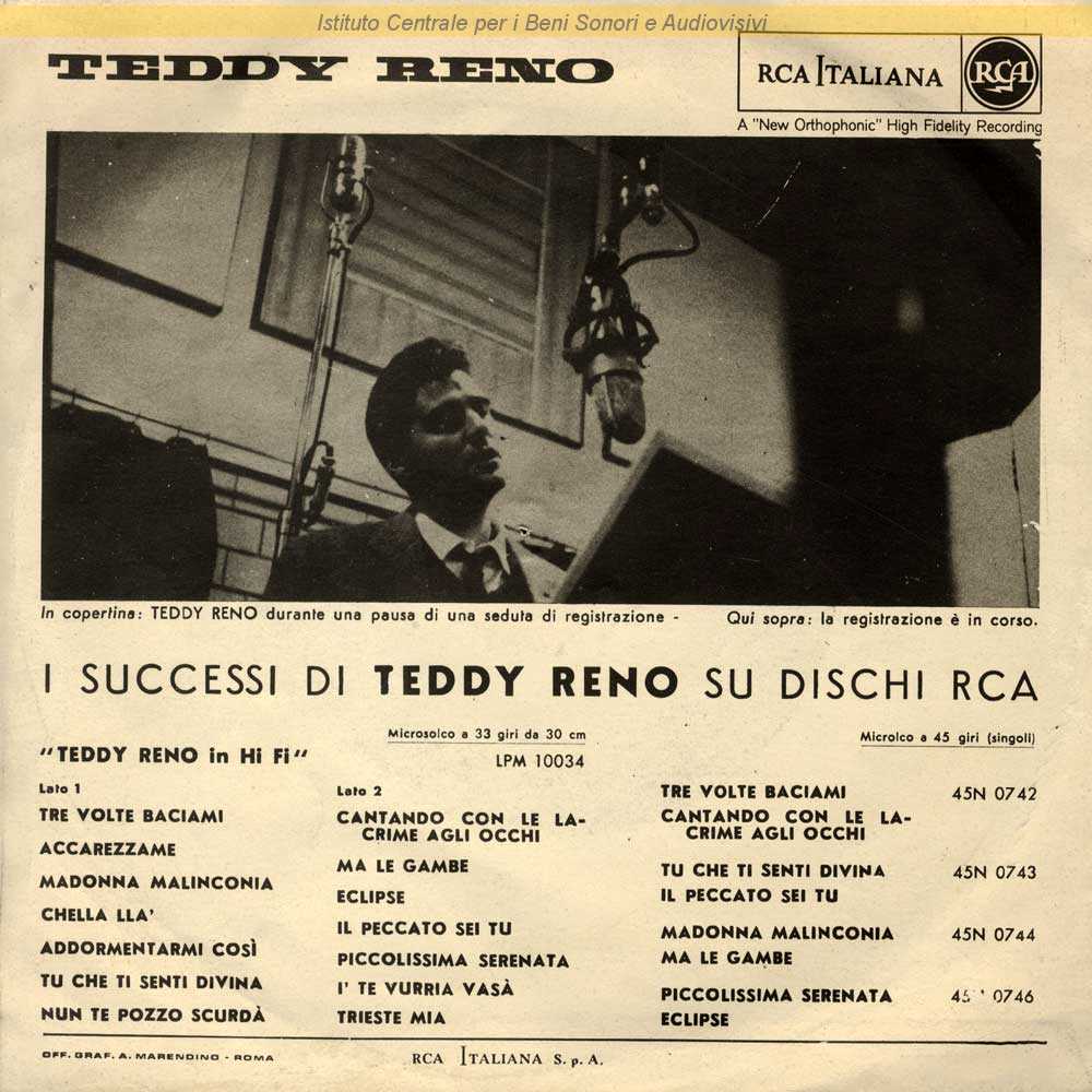 : Teddy Reno è pseudonimo di Ferruccio Ricordi / Distribuito da RCA Italiana - Roma