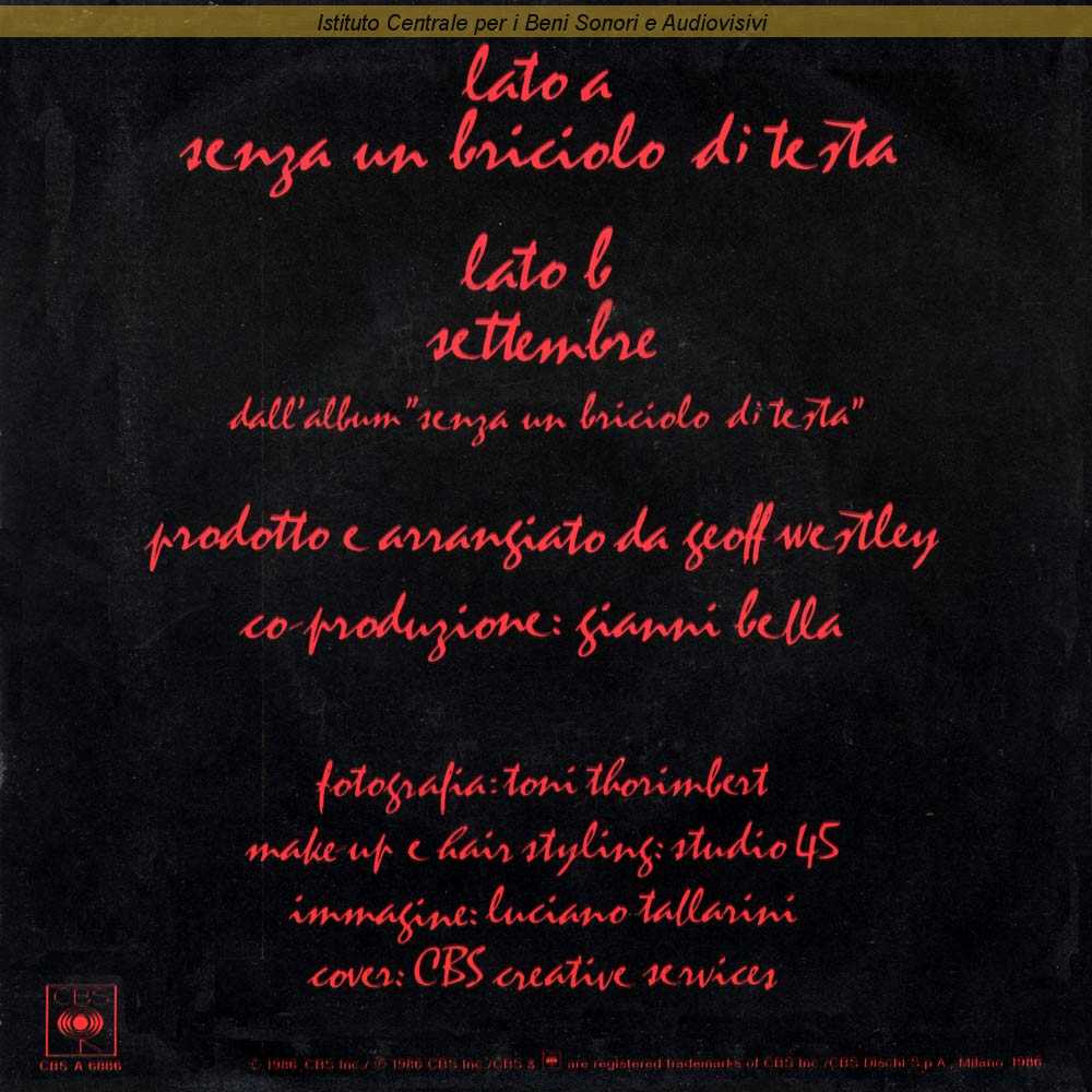 Autori: Gianni Bella Arrangiatori: Geoff Westley Produttori: Gianni Bella, Geoff Westley Edizioni: Usignolo , CBS Songs , L'Altra Metà