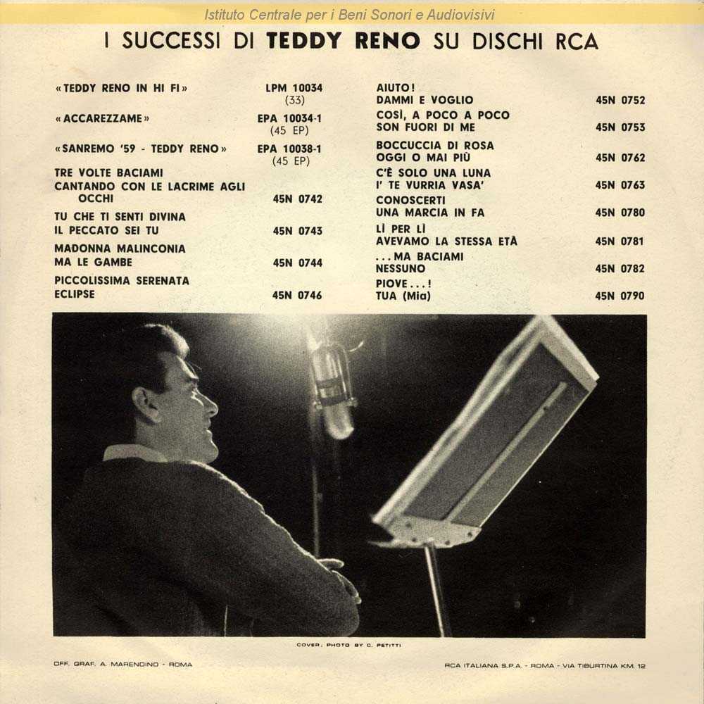 Note: Lato A: "Festival di Sanremo 1960" / Teddy Reno è il nome d'arte di Ferruccio Ricordi - Nisa è pseudonimo di Nicola Salerno / Fotografia di copertina di C. Petitti / Distribuito da RCA Italiana - Roma