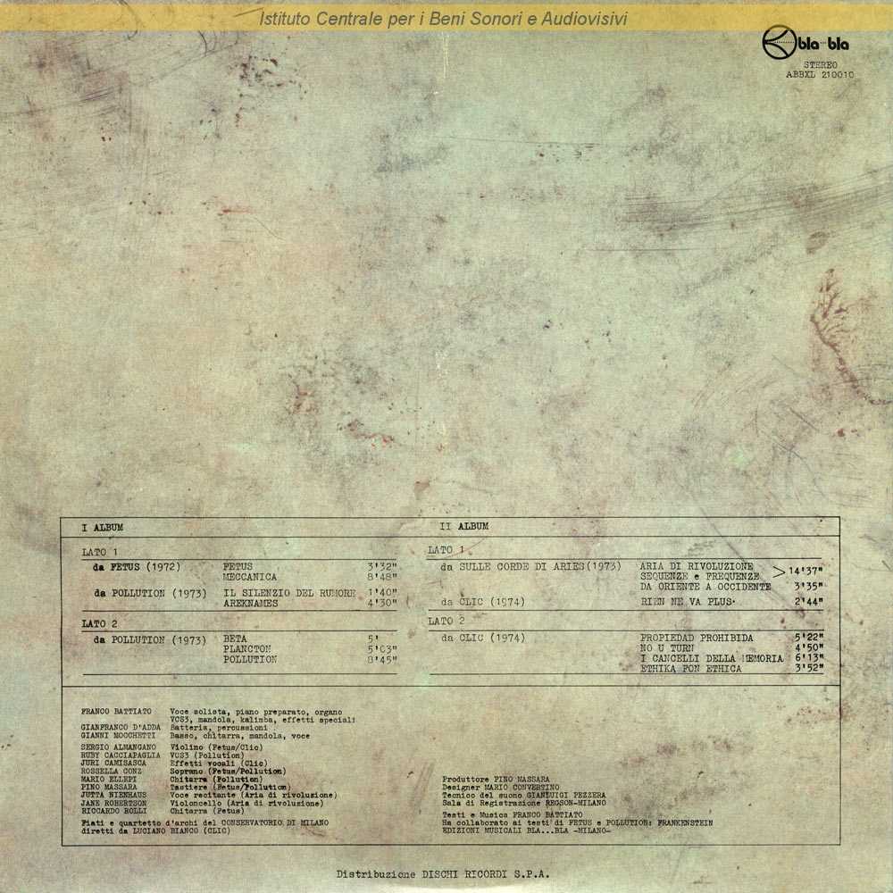 Autori: Franco Battiato, Frankenstein Musicisti: Roberto Cacciapaglia (VCS3 (Minimoog)) , Rossella Conz (soprano) , Mario Ellepi (chitarra) , Pino Massara (tastiere)