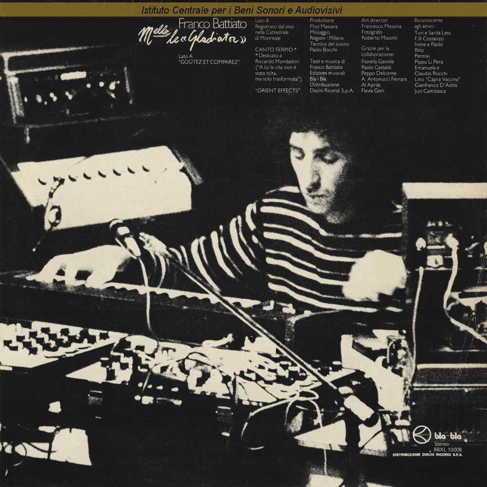 Note: Hanno collaborato: Fiorella Gentile, Paolo Castaldi, Peppe Delconte, Antonino Antonucci Ferrara, Al Aprile, Flavia Gori / Lato B registrato dal vivo nella Cattedrale di Monreale - Missato nello studio Regson di Milano da Paolo Bocchi / Art director: Francesco Messina - Fotografia di Roberto Masotti / Distribuito da Dischi Ricordi - Milano / Ristampato nel 1981 nella serie economica Orizzonte con diverso numero di catalogo (ORL 8536), diverse matrici (8536-1/8536-2) e lievi differenze nella copertina (vedi link "Altre immagini")
