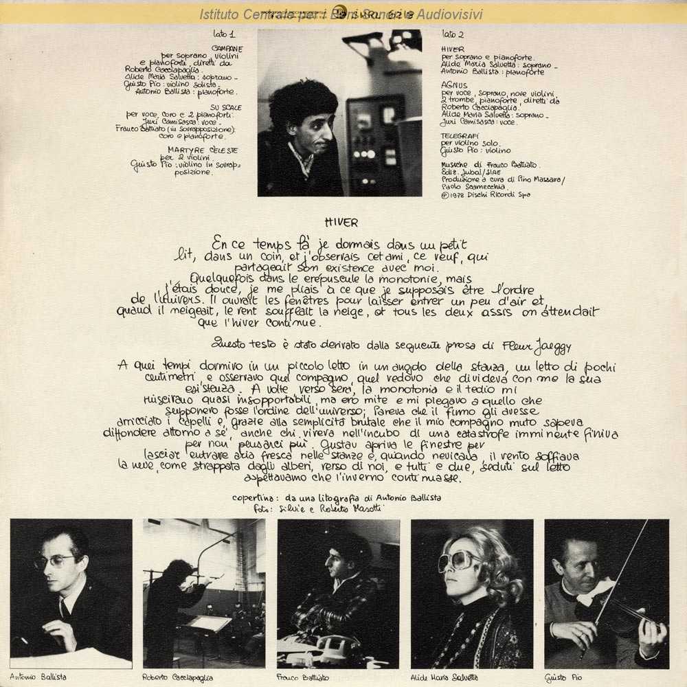 Autori: Franco Battiato Musicisti: Antonio Ballista (pianoforte) , Alide Maria Salvetta (soprano)
