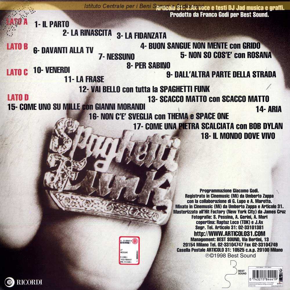 Interpreti: Articolo 31, Spaghetti Funk Autori: Alessandro Aleotti, Christopher Berg, Emanuele Busnaghi, Matt Darriau, D. Harris, Frank London, T. Masuko, Vincent Nobile, Luca Vito Perrini, Manny Rojas, Michael Sealy, Piergiorgio Severi, Jon Snodgrass Edizioni: Best Sound , BMG Ricordi , Piranha Musik