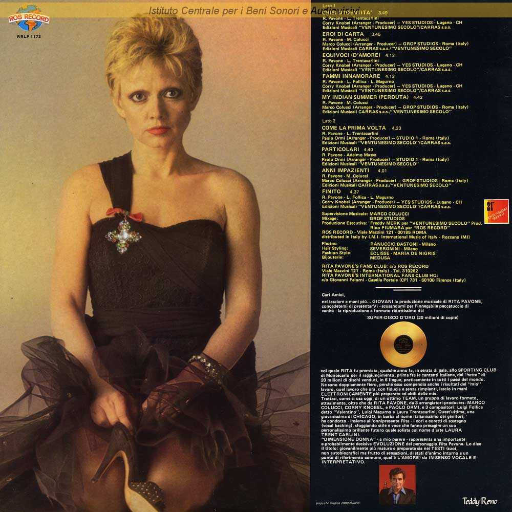 Autori: Rita Pavone, Laura Trentacarlini Arrangiatori: Corry Knobel Produttori: Corry Knobel