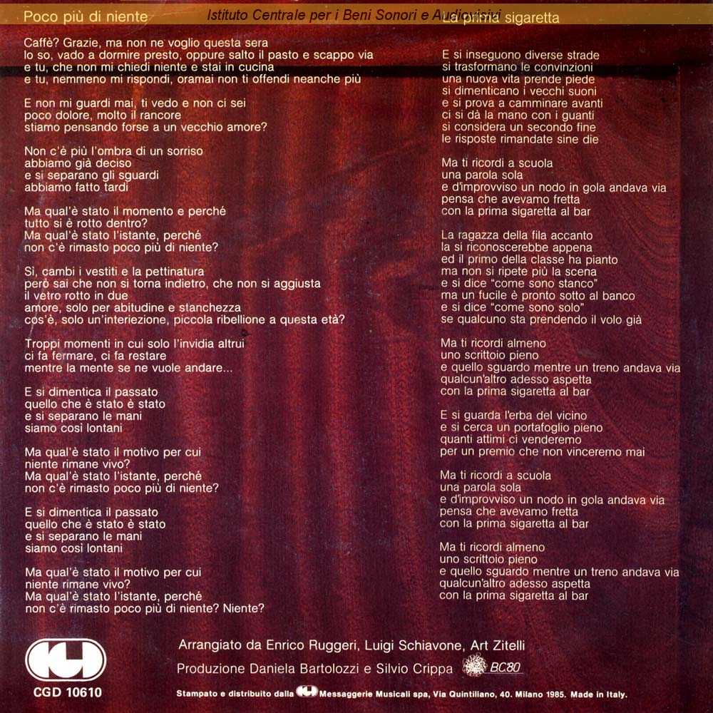 : Data matrici: 9 Aprile / Testi delle canzoni sul retro di copertina / Distribuito da CGD Mesaggerie Musicali - Milano