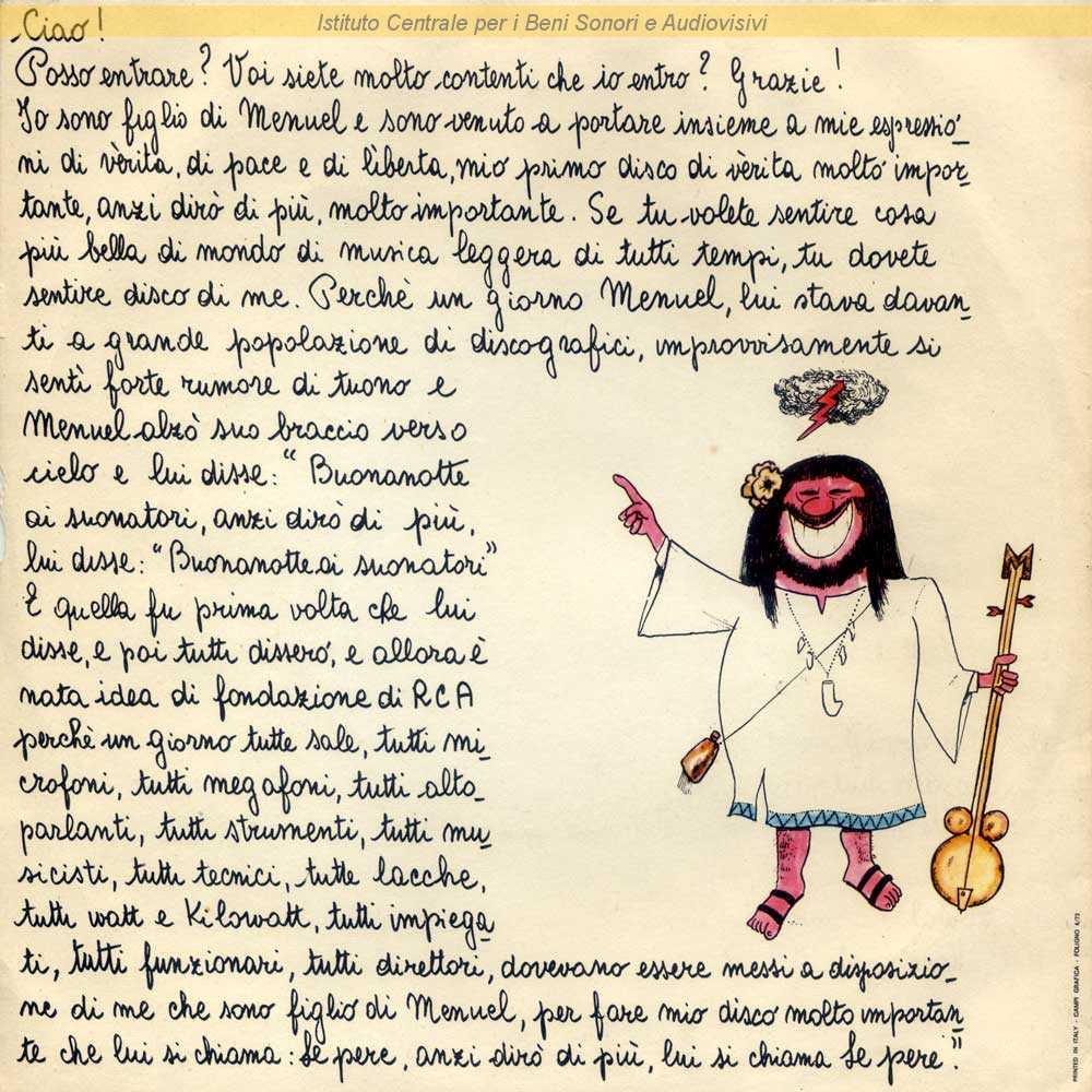 Note: Marcello Casco interpreta il personaggio della trasmissione radiofonica "Alto Gradimento" Il Figlio di Menuel a cui è attribuito il canto in etichetta / Distribuito da RCA Italiana - Roma