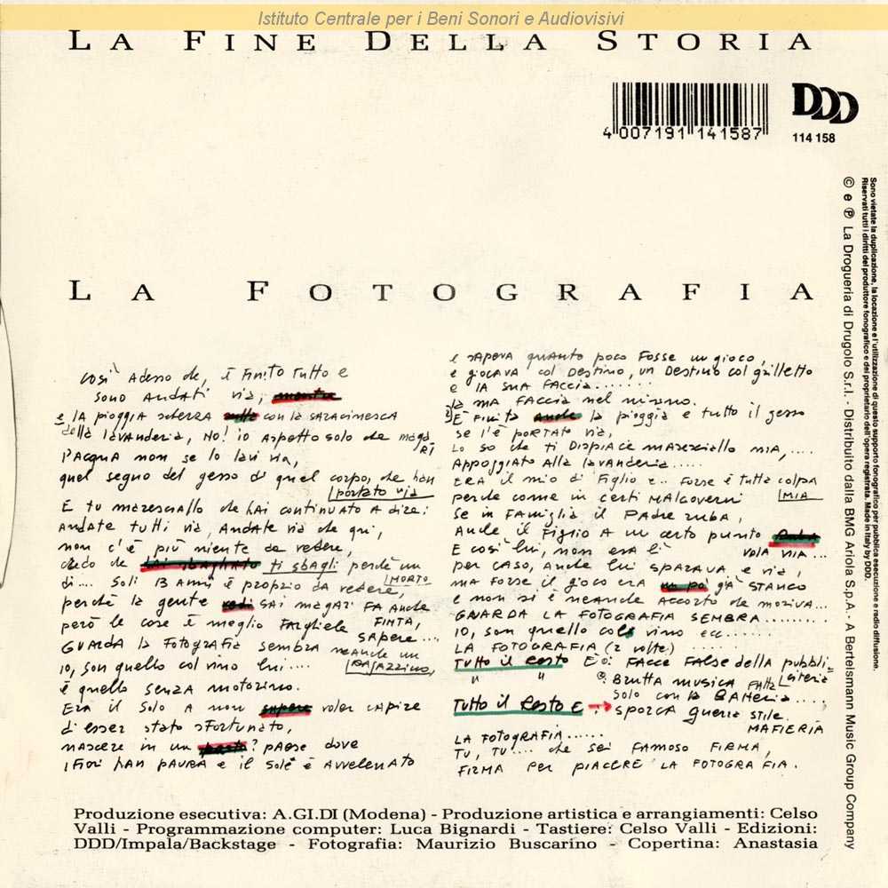 Autori: Enzo Jannacci Arrangiatori: Celso Valli Musicisti: Luca Bignardi (programmazione computer) , Celso Valli (tastiere) Edizioni: Impala , Drogueria di Drugolo , Backstage