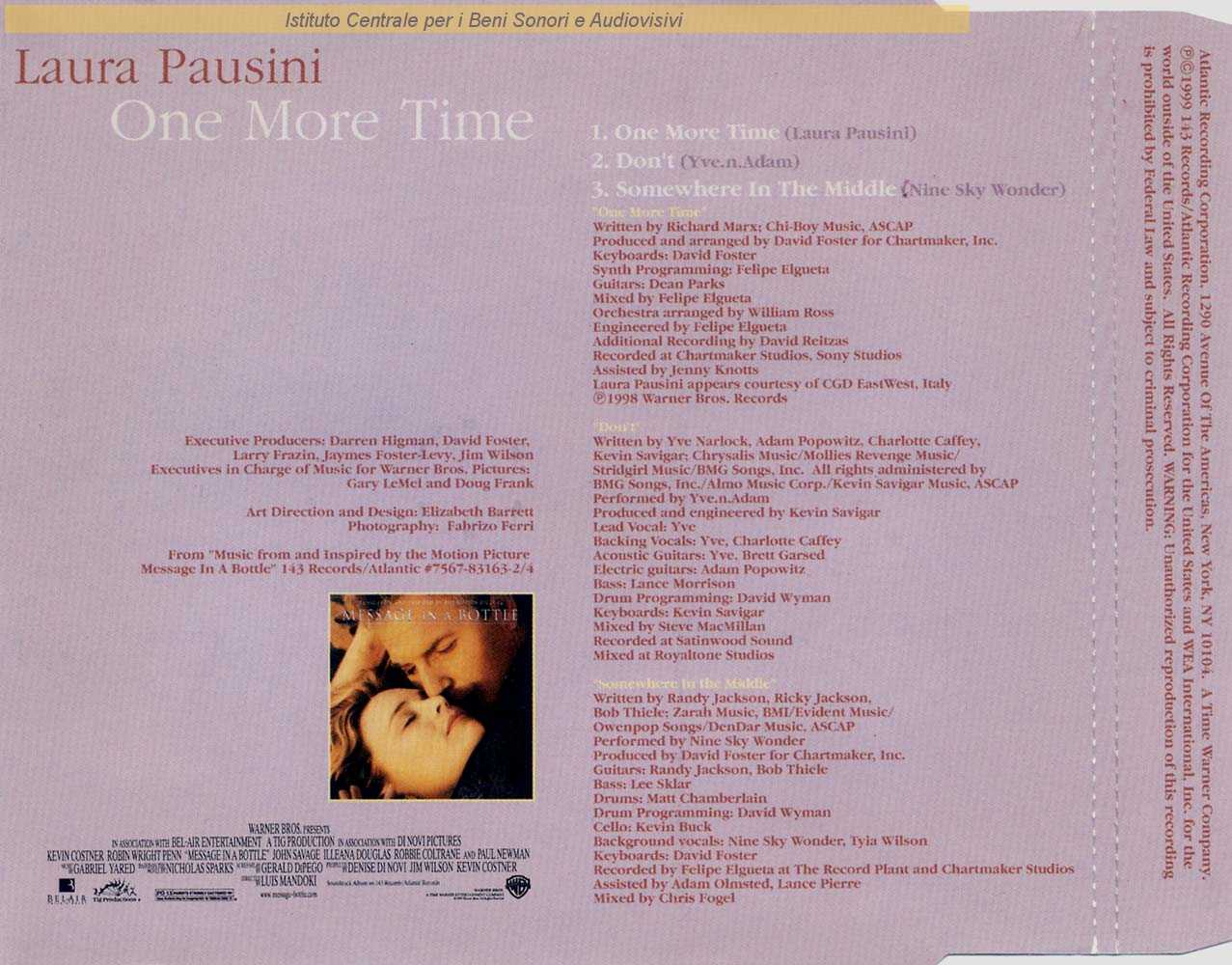 Interpreti: Laura Pausini Autori: Richard Marx Arrangiatori: David Foster Produttori: David Foster Musicisti: Felipe Elgueta (synth programming) , David Foster (tastiere) , Dean Parks (chitarre) , William Ross (direzione orchestra) Edizioni: Chi-Boy Music