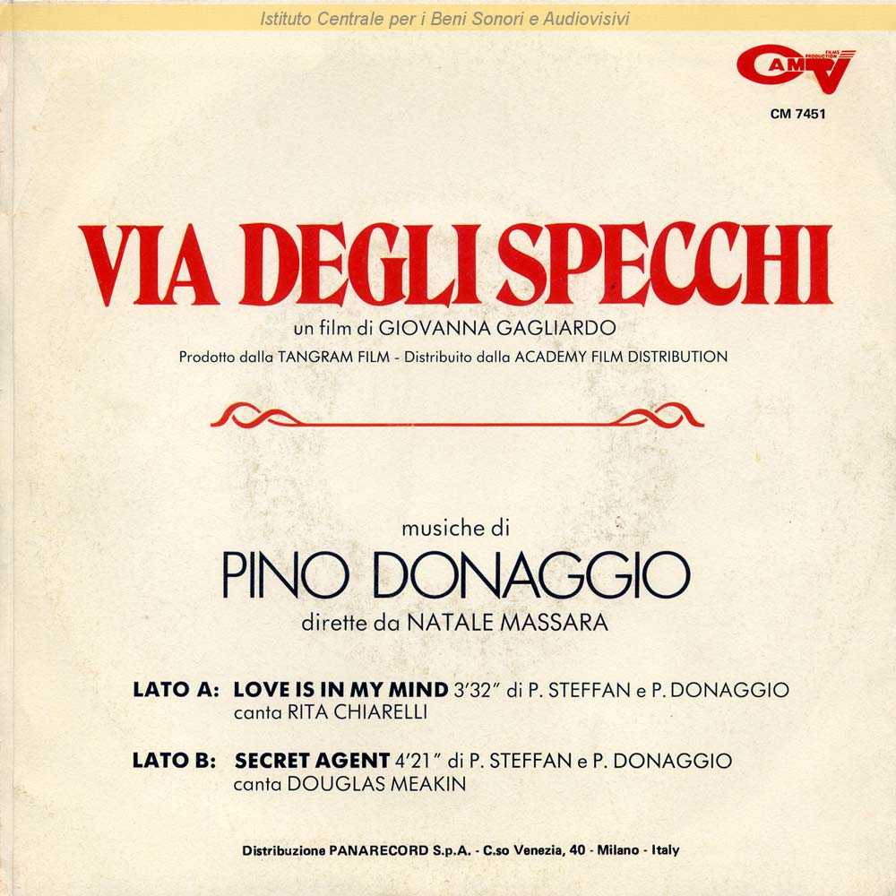 : Dalla colonna sonora del film "Via degli specchi" (Giovanna Gagliardo, 1983) / Distribuito da Panarecord - Milano
