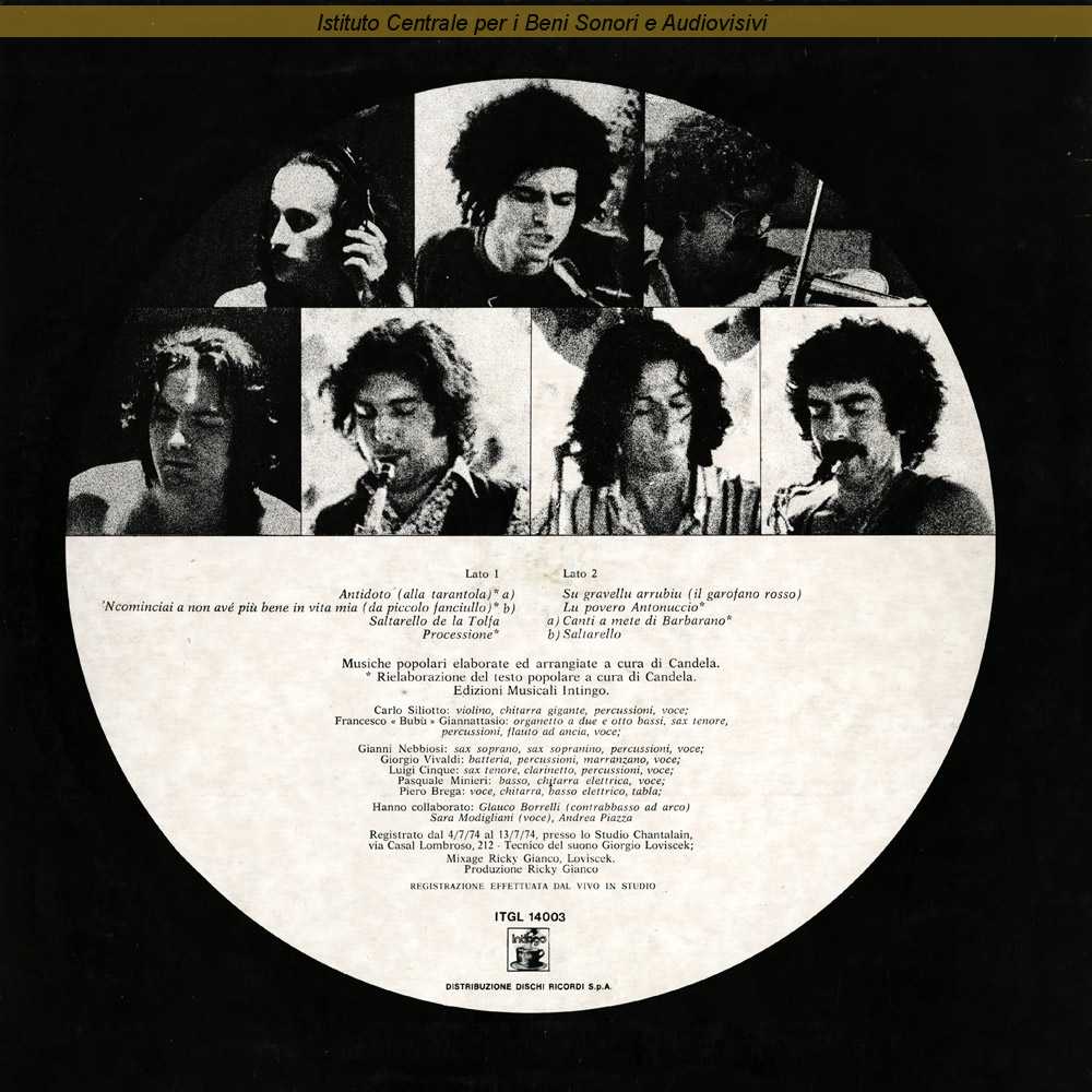 Autori: Candela, tradizionale Musicisti: Piero Brega (voce) , Luigi Cinque (coro) , Luigi Cinque (sax tenore) , Francesco Giannattasio (coro) , Pasquale Minieri (coro) , Gianni Nebbiosi (sax sopranino) , Gianni Nebbiosi (coro) , Carlo Siliotto (violino) , Giorgio Vivaldi (coro) , Giorgio Vivaldi (percussioni)