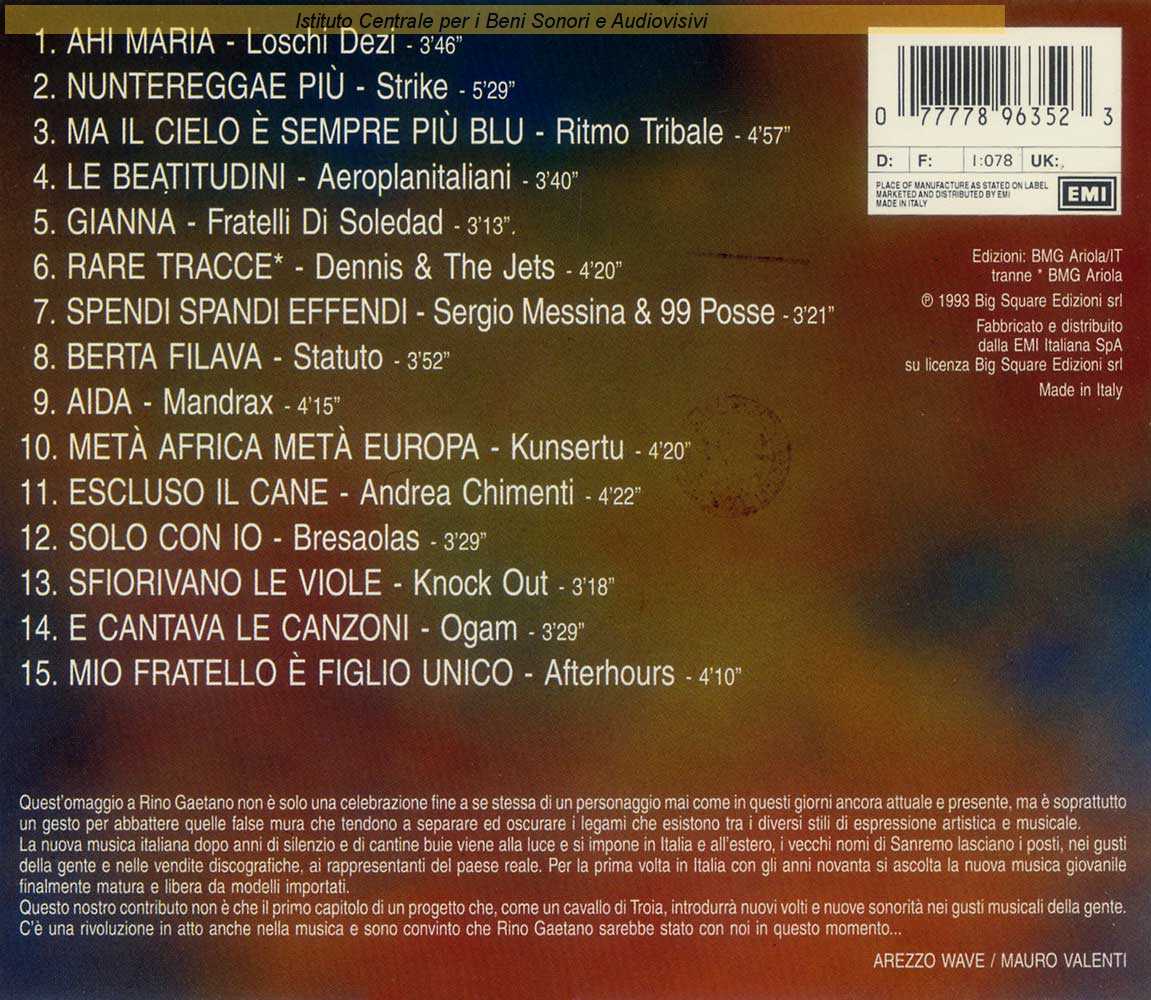 Interpreti: Ritmo Tribale Autori: Rino Gaetano Produttori: Fabio Magistrali, Ritmo Tribale
