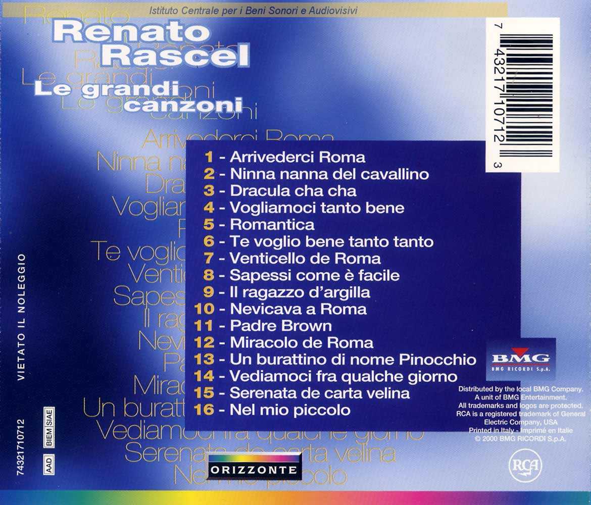 Autori: Renato Rascel, Vito Tommaso Orchestra: Vito Tommaso Edizioni: BMG Ricordi