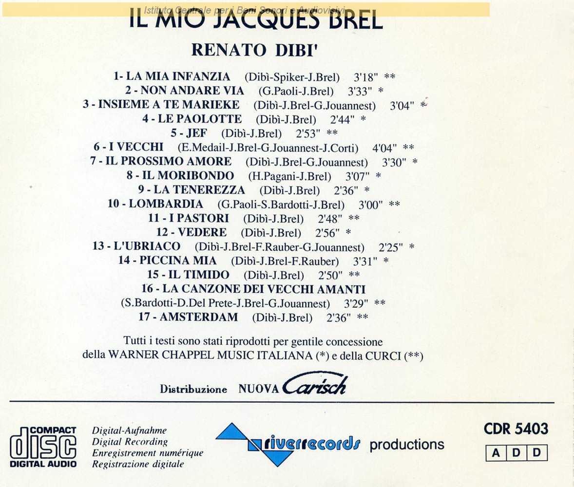 Autori: Jacques Brel, Renato Dibì Edizioni: Warner Chappell Music Italiana