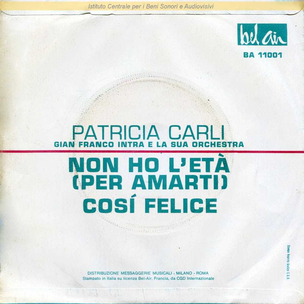 Note: Data matrici: 20 Gennaio / Lato A e Lato B: "Festival di Sanremo 1964" / Sull'etichetta del disco il titolo "Non ho l'età per amarti" è fra parentesi dopo il titolo in francese "Je suis à toi" / Nisa è lo pseudonimo di Nicola Salerno / Distribuito Messaggerie Musicali - Milano
