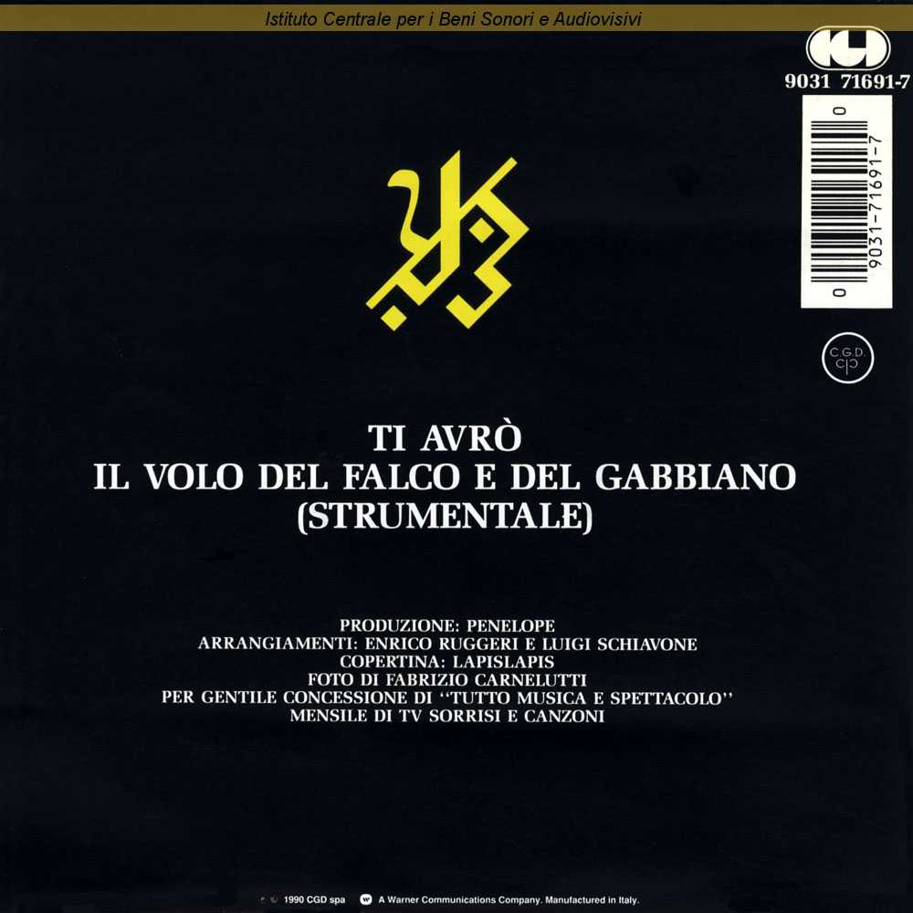 : Data matrici: 24 Aprile / "Il volo del falco e del gabbiano" è un brano strumentale / Copertina: Studio Lapislapis - Fotografia di Fabrizio Carnelutti / Distribuito da CGD Mesaggerie Musicali - Milano