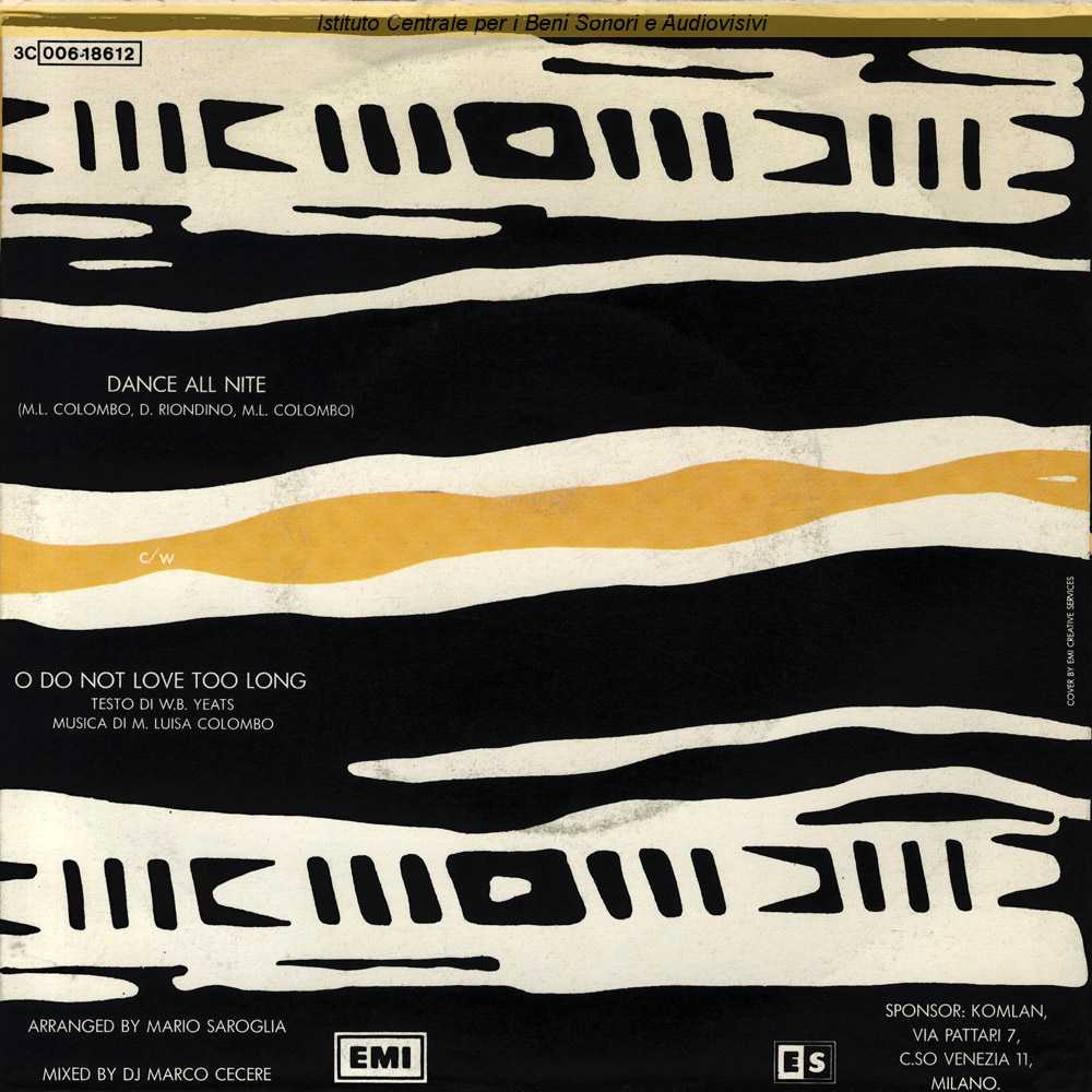 : Data matrici: 8 Marzo / Lu Colombo è il nome d'arte di Maria Luisa Colombo / Mixato da Marco Cecere / Distribuito da EMI Italiana - Caronno Pertusella (Varese)