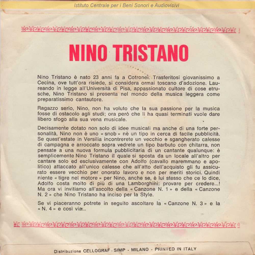 : Nino Tristano è il nome d'arte di Nino Pirito / Distribuito da Cellograf-Simp - Milano