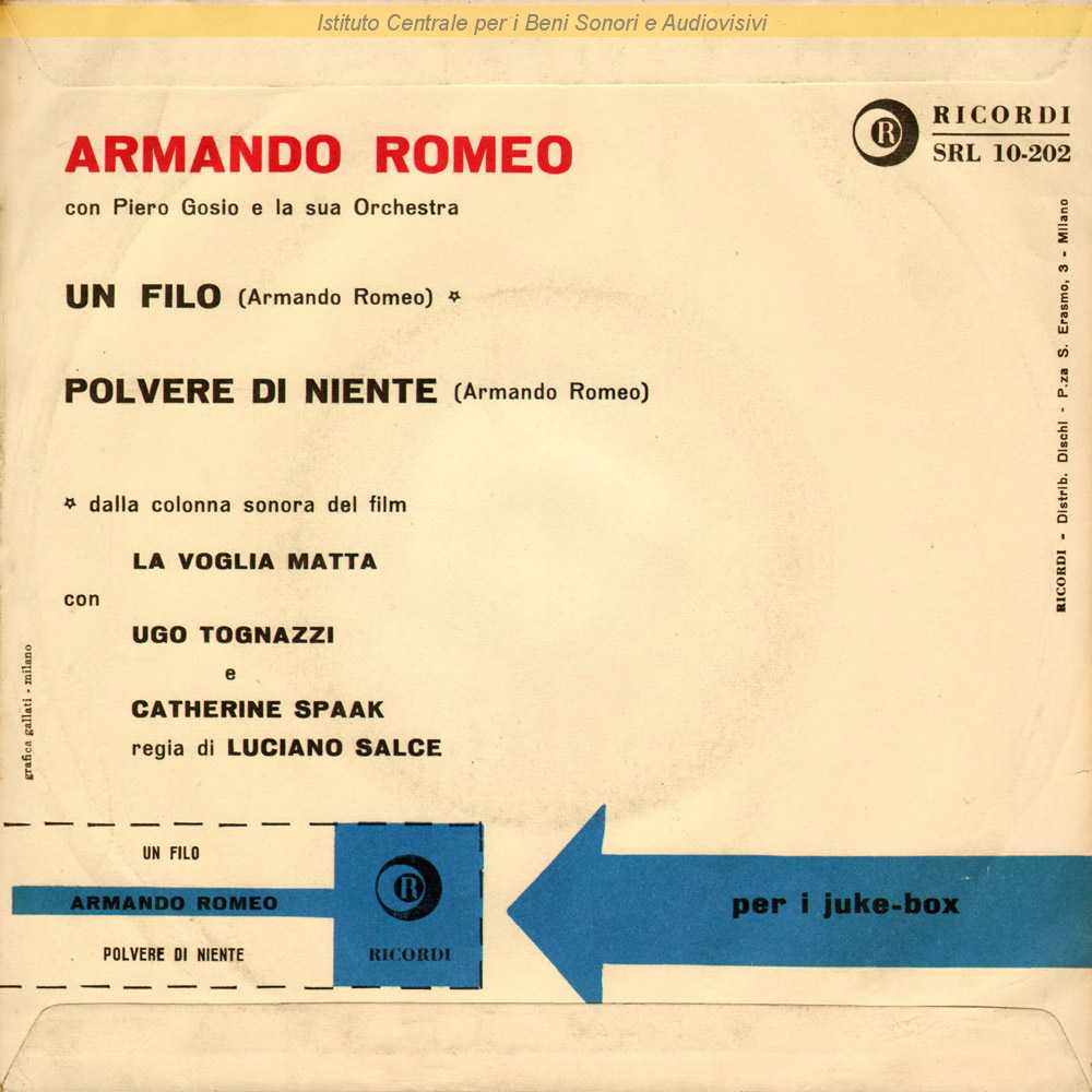 : Data matrice: 5 Aprile / Lato A: dal film "La voglia matta" (Luciano Salce, 1962) / Distribuito da Dischi Ricordi - Milano