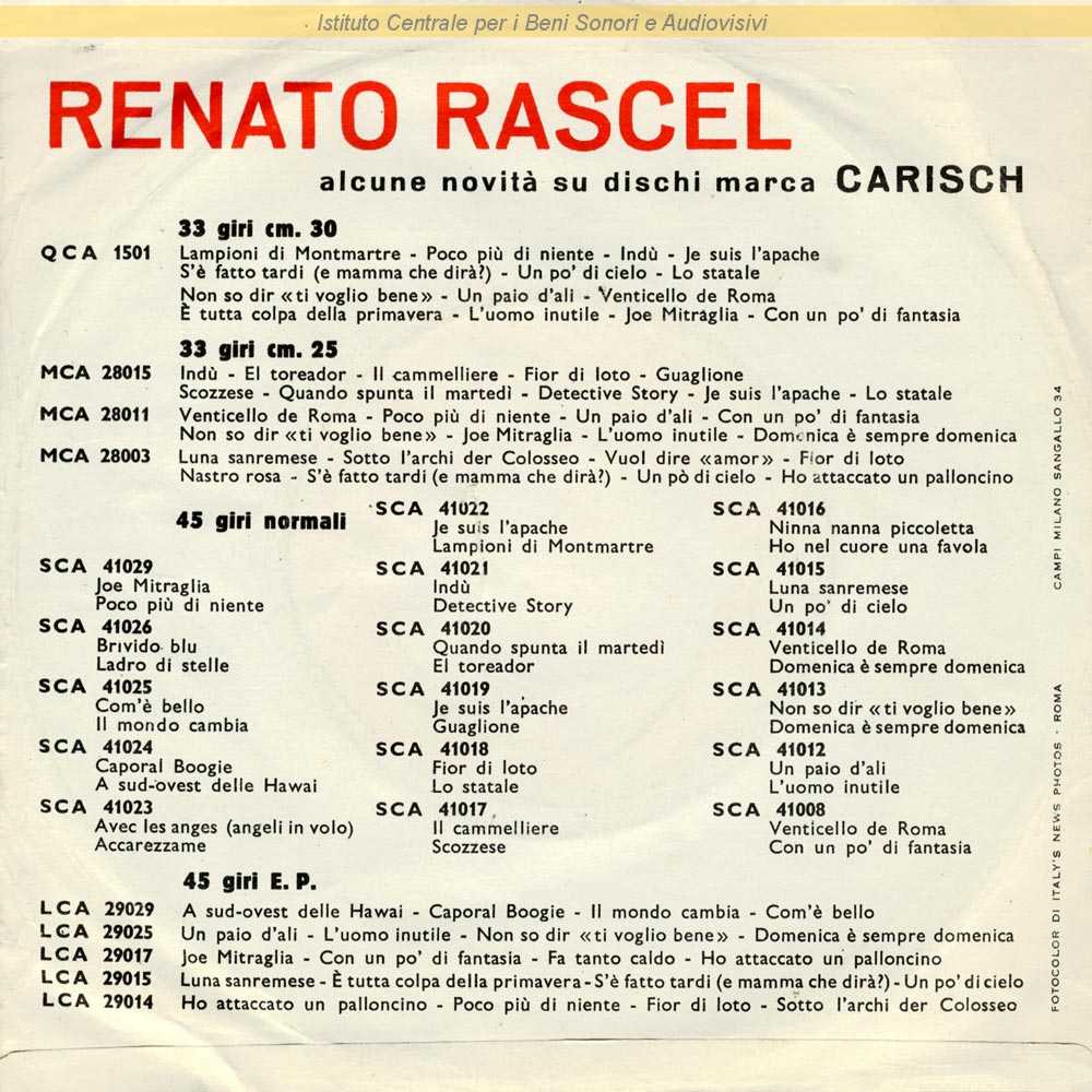 : Data matrici: 10/1/1956 (lato A), 17/1/1956 (lato B) / In copertina compare il marchio Carisch, in etichetta il marchio Odeon