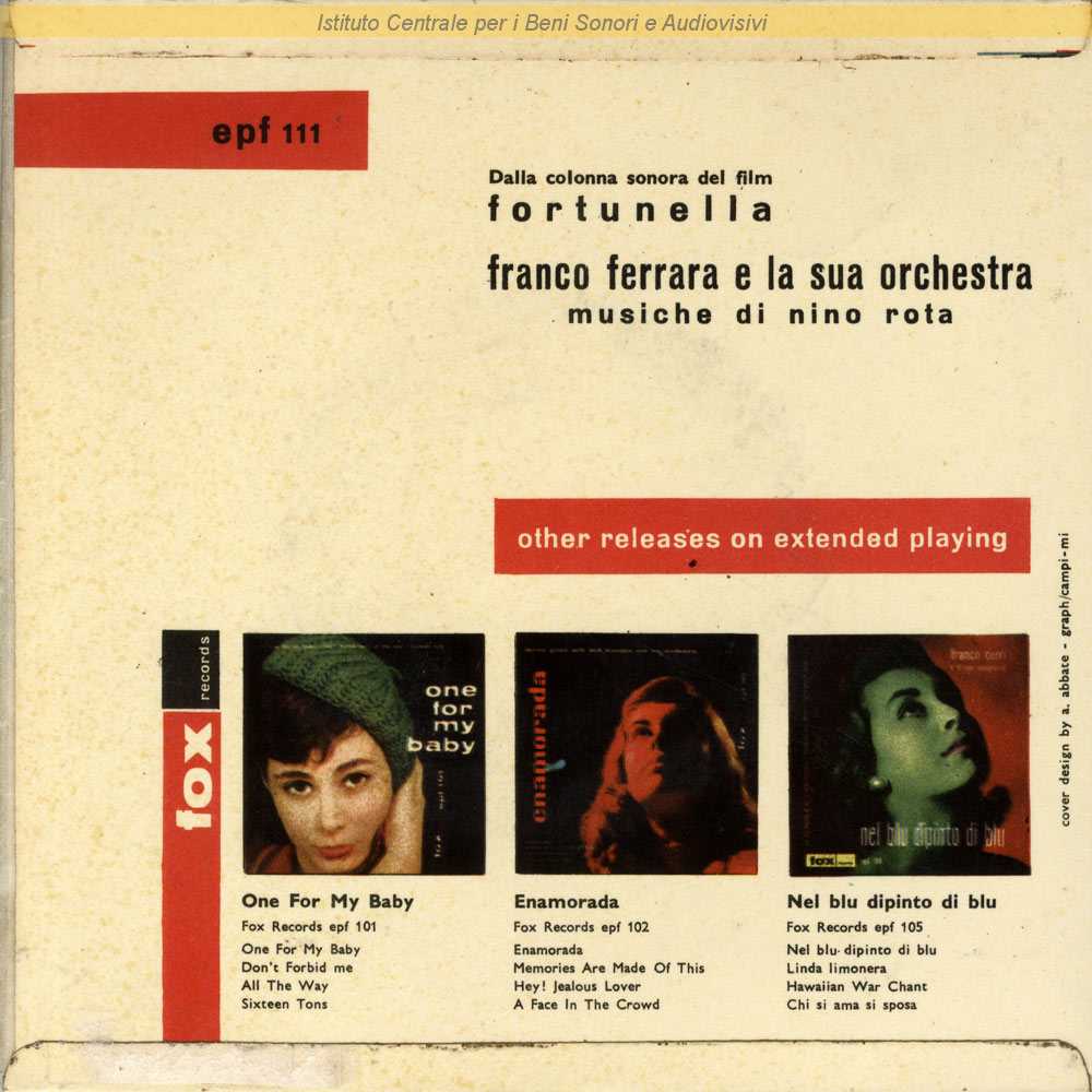 : Dalla colonna sonora del film "Fortunella" (Eduardo De Filippo, 1958) / Copertina di A. Abbate