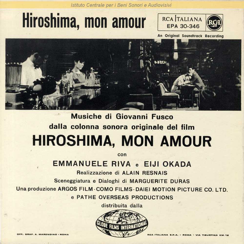 Note: Dalla colonna sonora originale del film "Hiroshima, mon amour" (Alain Resnais, 1959) / In mancanza di indicazioni del direttore d'orchestra sia in copertina che in etichetta abbiamo indicato Giovanni Fusco (e la relativa orchestra) come interprete e direttore d'orchestra / Distribuito da RCA Italiana - Roma