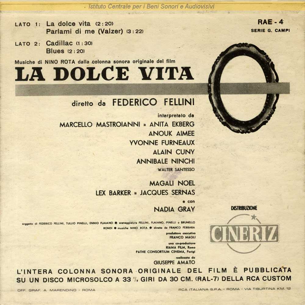 : Dalla colonna sonora originale del film "La dolce vita" (Federico Fellini, 1960) / Distribuito da RCA Italiana - Roma