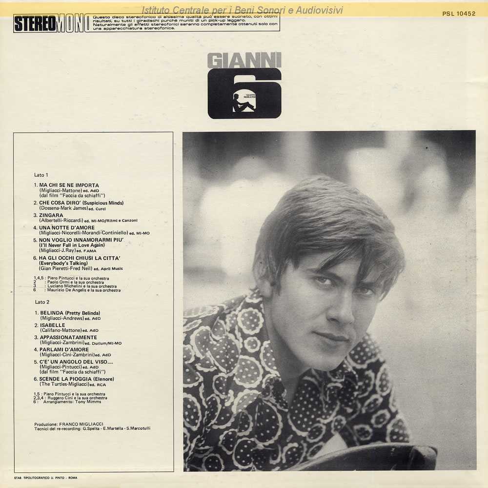 Autori: Ubaldo Continiello, Franco Migliacci, Gianni Morandi, Alberto Nicorelli Orchestra: Piero Pintucci Edizioni: Mimo
