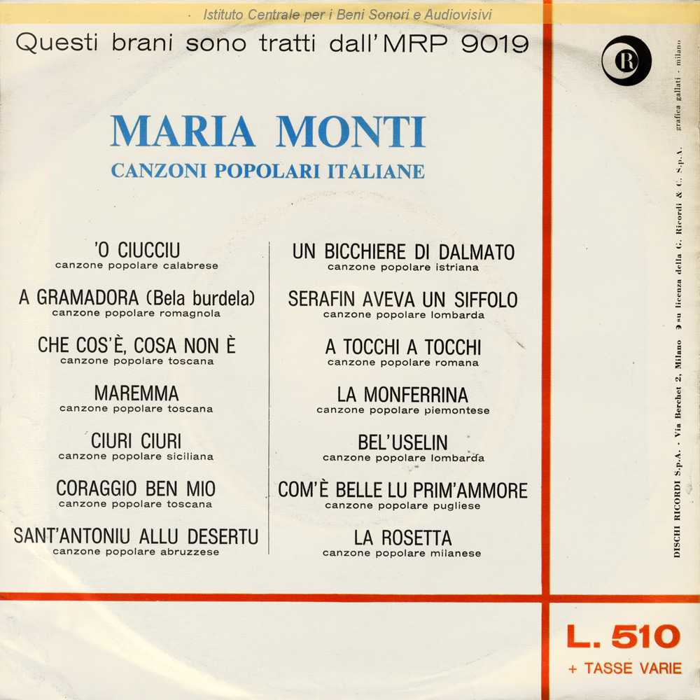 : Data matrici: 9 Novembre / Il vero cognome di Maria Monti è Monticelli / Distribuito da Dischi Ricordi - Milano