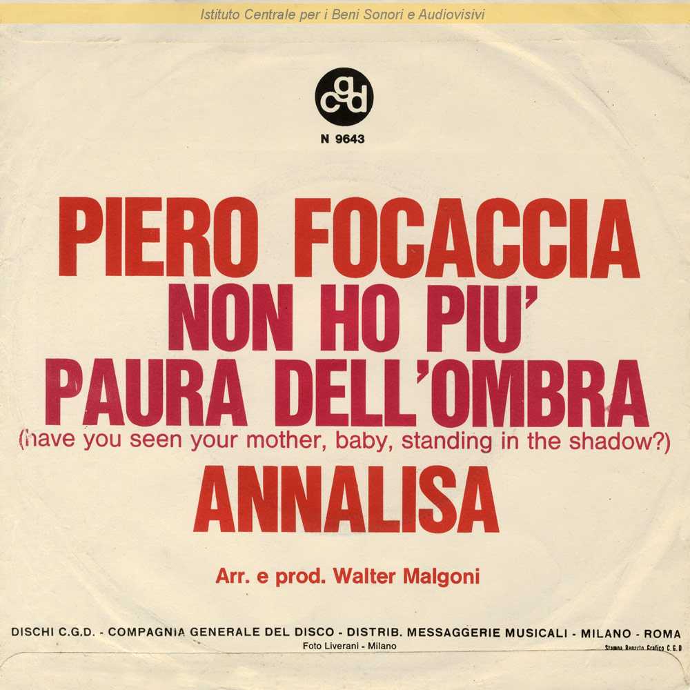 NON HO PIÙ PAURA DELL'OMBRA (HAVE YOU SEEN YOUR MOTHER, BABY, STANDING IN THE SHADOW? - Rolling Stones) Autori: Claudio Fontana, Mick Jagger, Keith Richards