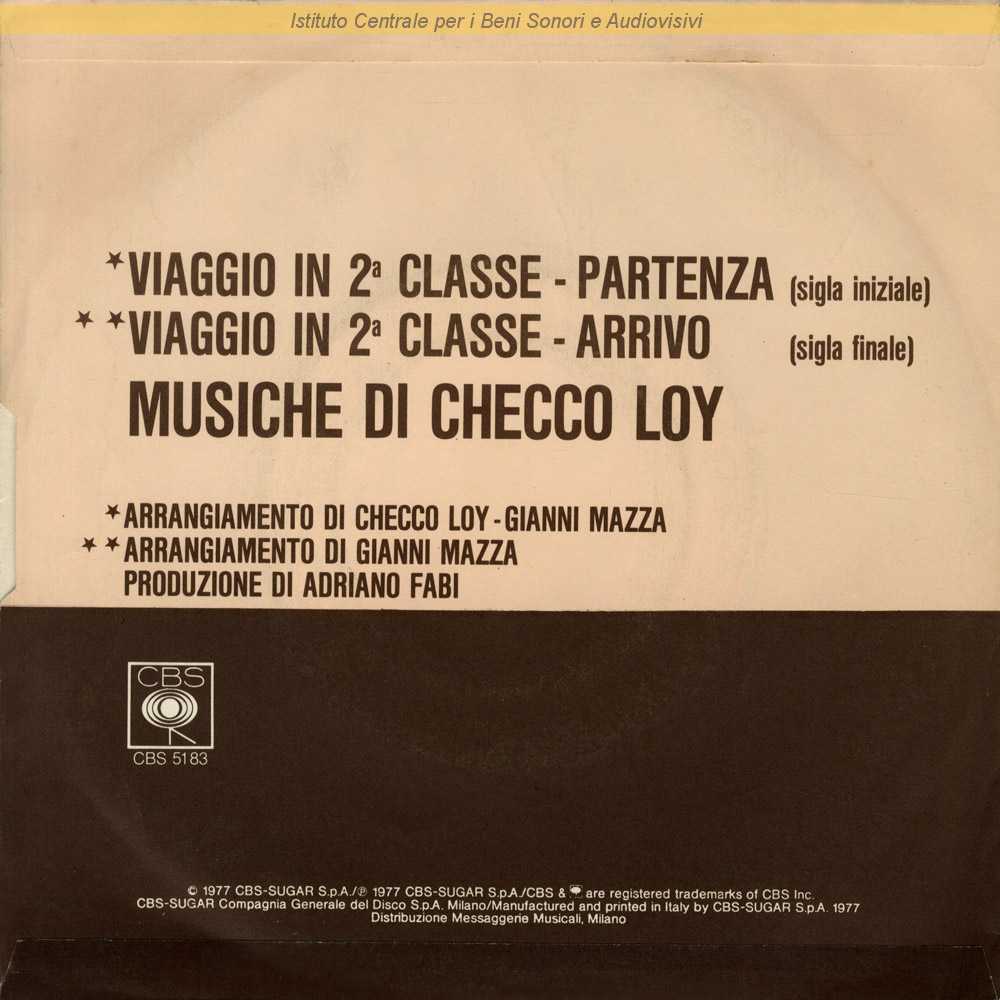 : Data matrici: 28 Marzo / Sigla del programma tv "Viaggio in 2° classe" (Nanni Loy, 1977) / Distribuito da Messaggerie Musicali - Milano