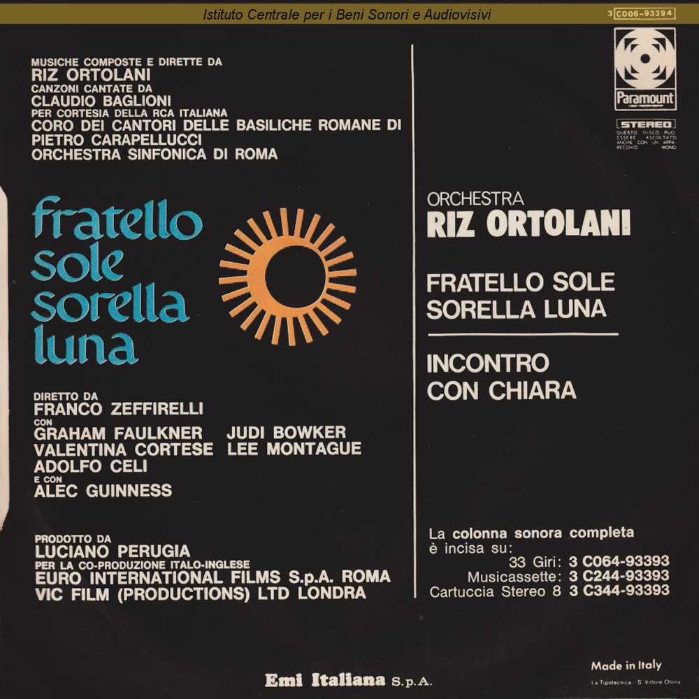 Note: Data matrici: 14 aprile / Dalla colonna sonora originale del film "Fratello Sole sorella Luna" (Franco Zeffirelli, 1972) / Benjamin è lo pseudonimo di Katyna Ranieri / Ambedue i brani sono strumentali / Distribuito da EMI Italiana - Caronno Pertusella (Varese)