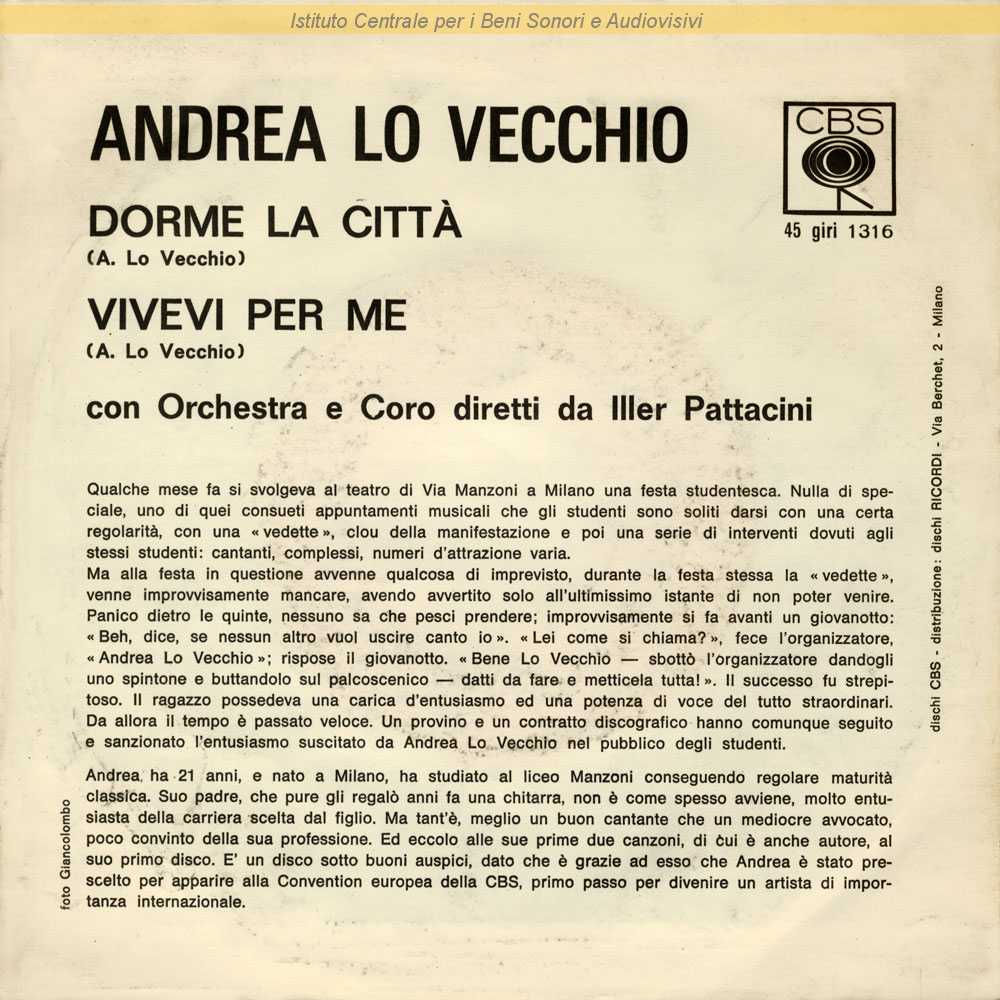 : Data matrici: 29 Aprile / Sul retro di copertina presentazione dell'artista non firmata / Fotografia di copertina di Giancolombo (Gian Battista Colombo) / Distribuito da Dischi Ricordi - Milano
