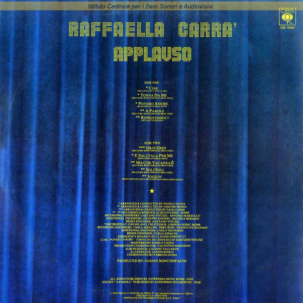 Autori: Gianni Belfiore, Gianni Boncompagni, Franco Bracardi Orchestra: Adelmo Musso Edizioni: Anteprima , Sugarmusic