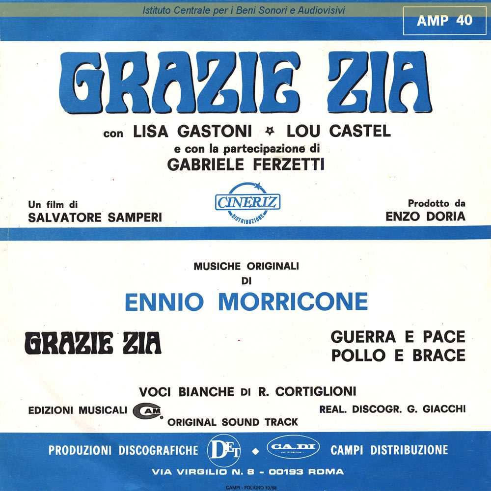 : Colonna originale del film "Grazie zia" (Salvatore Samperi, 1968) / Distribuito da Campi Distribuzione - Roma