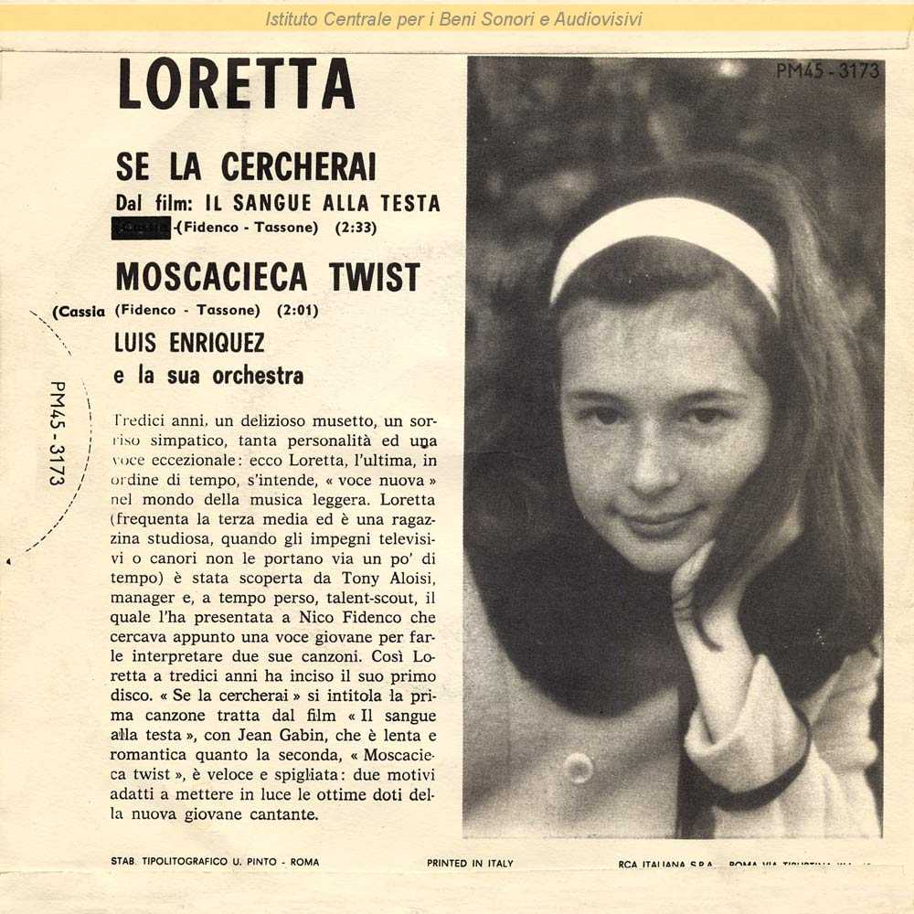 : Inciso come Loretta / Lato A: dalla colonna sonora del film "Il sangue alla testa" (Gilles Grangier, 1956) / Sul retro copertina breve nota di presentazione del disco non firmata / Distribuito da RCA Italiana - Roma
