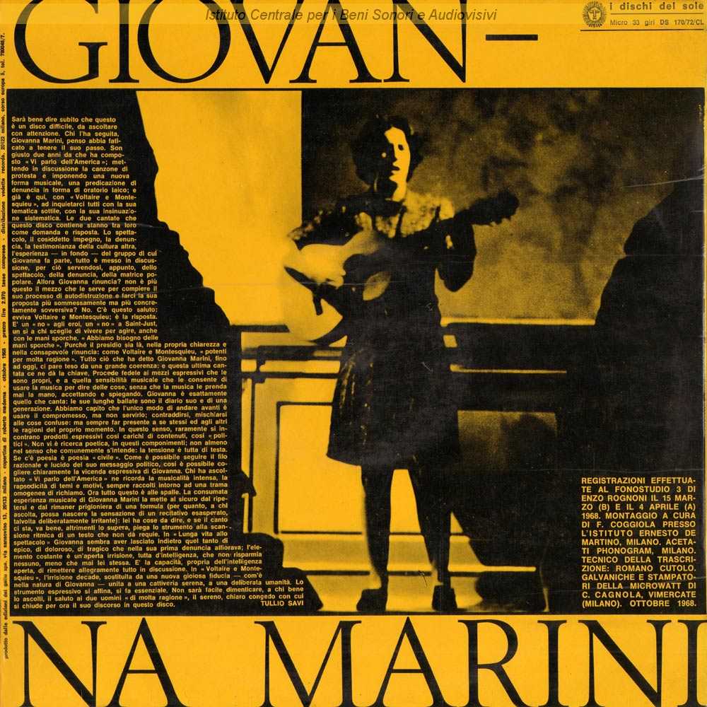 Note: Registrato da Enzo Rognoni al Fonostudio 3 di Roma il 15 Marzo e il 4 Aprile 1968 / Montaggio a cura di Franco Coggiola all'Istituto De Martino di Milano / Copertina di Roberto Maderna - In allegato un booklet di 44 facciate (vedi link "Altre immagini" / Sul retro di copertina presentazione del disco e dell'artista firmata da Tullio Savi / In etichetta la dicitura 'Due cantate di Giovanna Marini' / Distribuito da Vedette Records - Milano