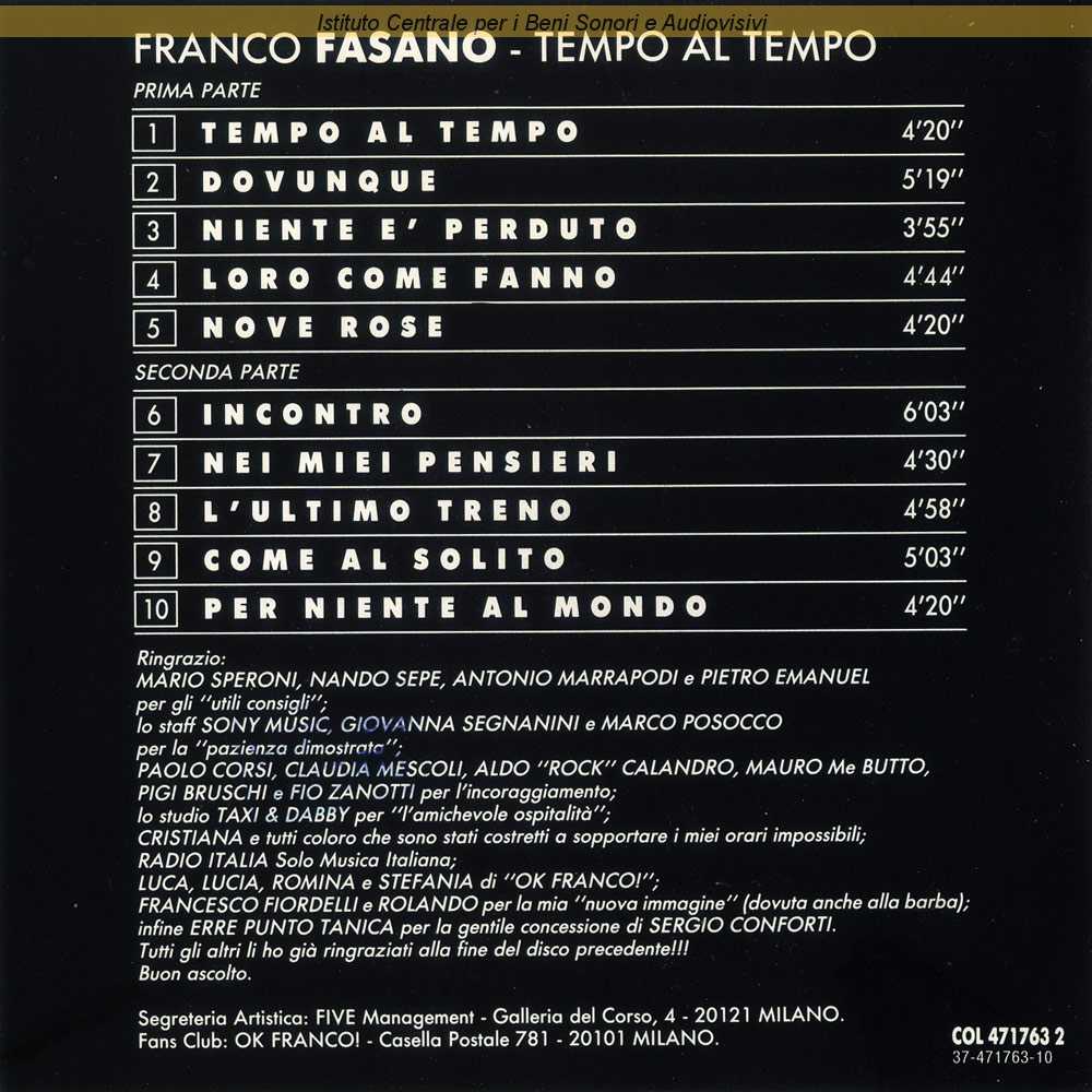 Interpreti: Franco Fasano, Flavia Fortunato Autori: Fabrizio Berlincioni, Franco Fasano Arrangiatori: Sergio Conforti, Michele Tadini Musicisti: Maurizio Camagna (programmazione tastiere) , Sergio Conforti (pianoforte, tastiere) , Fabrizio Consoli (chitarra elettrica) , Faso (basso) , Moreno Ferrara (cori) , Paola Folli (cori) , Lalla Francia (cori) , Lele Melotti (batteria) , Paolo Panigada (cori) , Michele Tadini (programmazione tastiere) , Michele Tadini (chitarra classica) , Michele Tadini (tastiere) , Roberto Vernetti (programmazione tastiere)