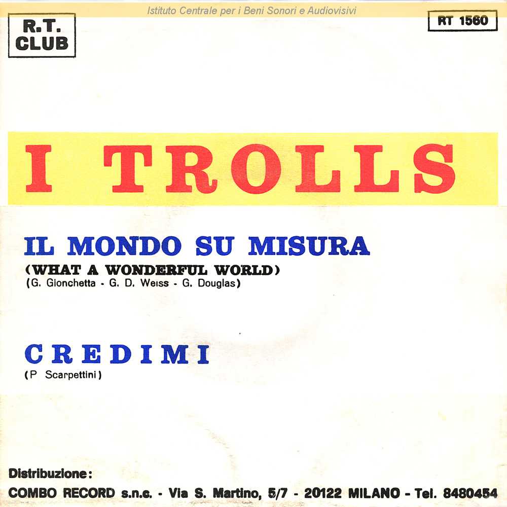 Note: Data matrici: 8 Giugno-6 Giugno / Sul fronte di copertina il lato A è intitolato "Un mondo su misura", contrariamente a quanto riportato sul retro e in etichetta - George Douglas è il nome d'arte di Bob Thiele / Distribuito da Combo Record - Milano / Formazione: Piero Darini - chitarra; Ugo Guidi - basso; Luciano Milanese - chitarra; Giulio Menin - batteria; Pino Scarpettini- pianoforte