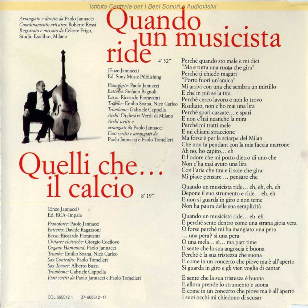 Autori: Enzo Jannacci Musicisti: Alberto Buzzi (sax tenore) , Gabriele Cappella (trombone) , Nico Carleo (tromba) , Giorgio Cocilovo (chitarre elettriche) , Riccardo Fioravanti (basso) , Paolo Jannacci (organo Hammond) , Paolo Jannacci (pianoforte) , Davide Ragazzoni (batteria) , Emilio Soana (tromba) , Paolo Tomelleri (sax contralto) Edizioni: RCA , Impala
