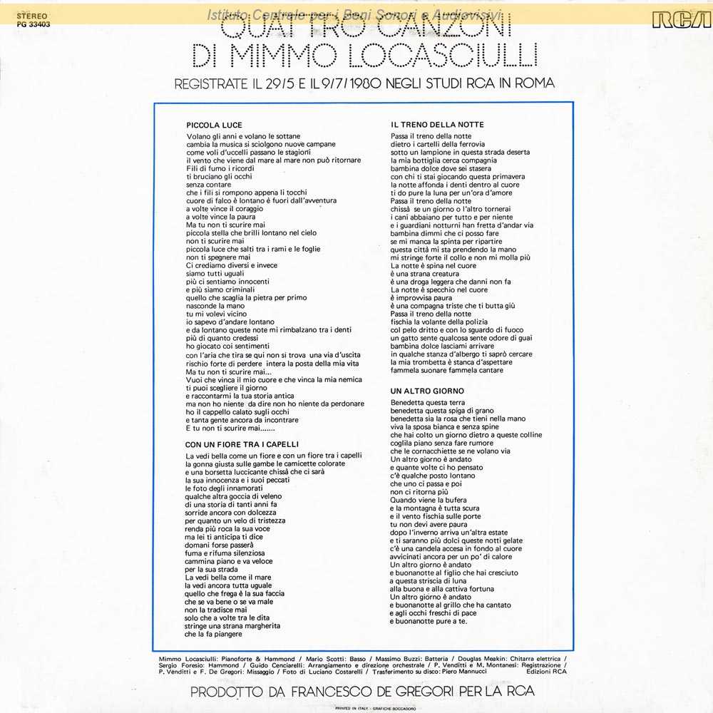 Autori: Mimmo Locasciulli Arrangiatori: Guido Cenciarelli