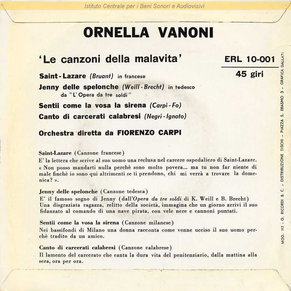 : Sul retro copertina breve nota di presentazione delle canzoni non firmata / Distribuito da Dischi Ricordi - Milano