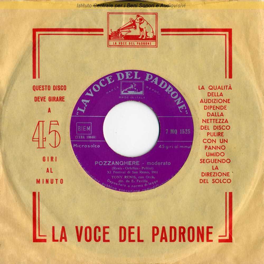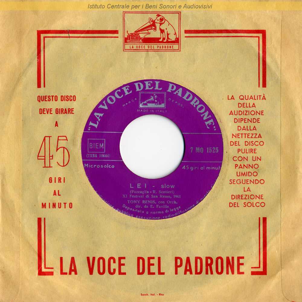 : Data matrici: 13 Gennaio-19 Gennaio / Lato A: "Festival di Sanremo 1961" / Tony Renis e Orfelius sono il nome d'arte e lo pseudonimo di Elio Cesari e di Orfelio Cesari (suo padre)