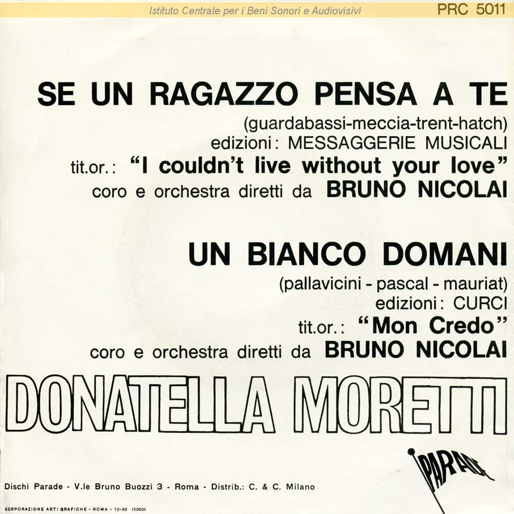 SE UN RAGAZZO PENSA A TE (I COULDN'T LIVE WITHOUT YOUR LOVE - Petula Clark) Autori: Giancarlo Guardabassi, Tony Hatch, Gianni Meccia, Jackie Trent Edizioni: Messaggerie Musicali