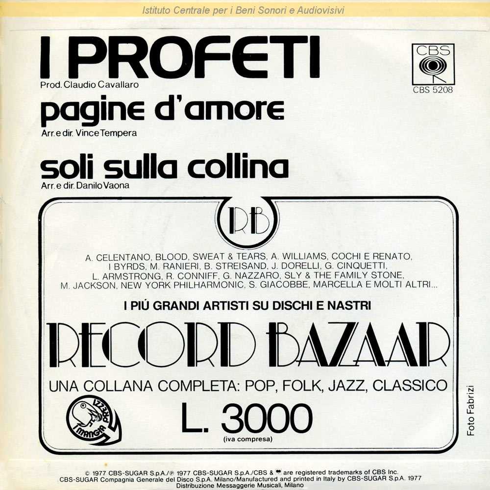 : Data matrici: 12 Aprile / Fotografia di Fabrizi / Distribuito da Messaggerie Musicali - Milano / Formazione: Osvaldo Bernasconi - batteria; Donato Ciletti: basso; ? - voce, chitarra; ? - tastiere