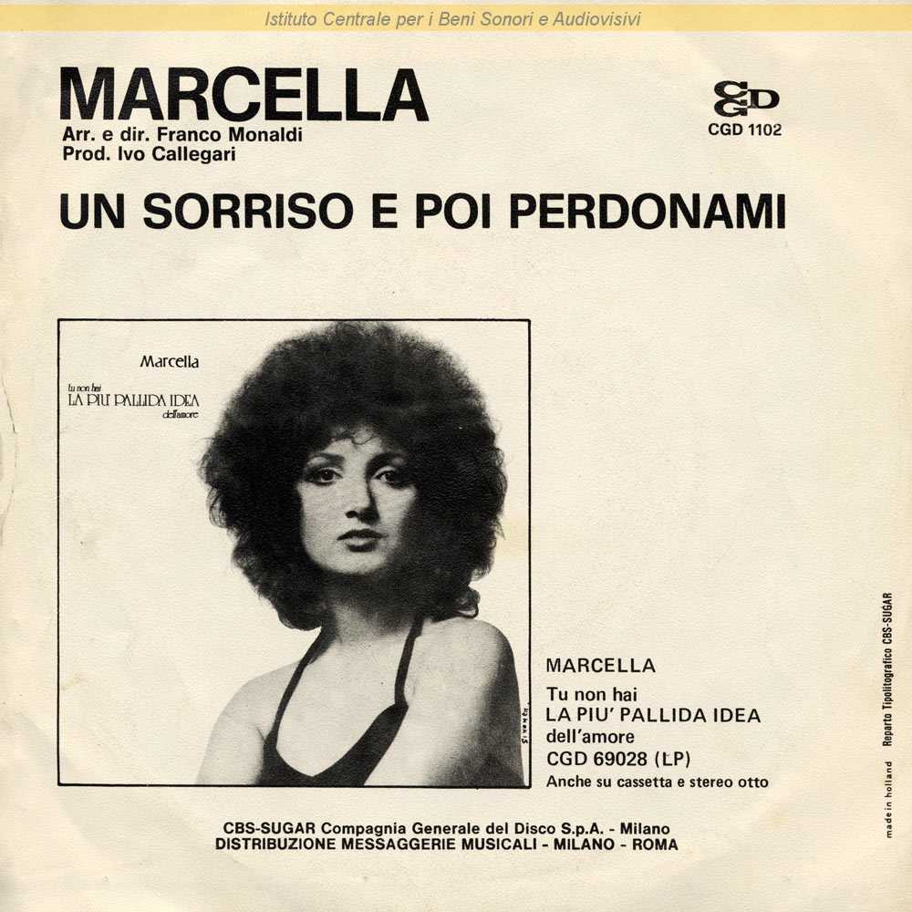 : Data matrici: 5 Dicembre / Inciso come Marcella / Lato A: "Canzonissima 1972" / Distribuito da Messaggerie Musicali - Milano