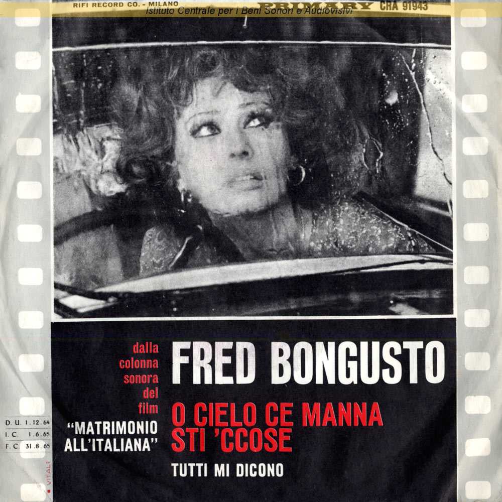 : Lato A: dalla colonna sonora del film "Matrimonio all'italiana" (Vittorio De Sica, 1964) / Grafica di Romano Vitale / Distribuito da RIFI Record Company - Milano