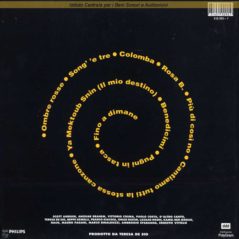 Autori: Anouar Brahem, Teresa De Sio, Ali Louati Musicisti: Scott Ambush (basso) , Kamel Ben Jeddau (percussioni) , Anouar Brahem (liuto) , Vittorio Cosma (tastiere) , Teresa De Sio (voce) , Francesco Giacoia (chitarre acustiche e elettriche) , Omar Hakim (batteria) , Lasaad Hosni (percussioni) , Ernesto Vitolo (pianoforte)
