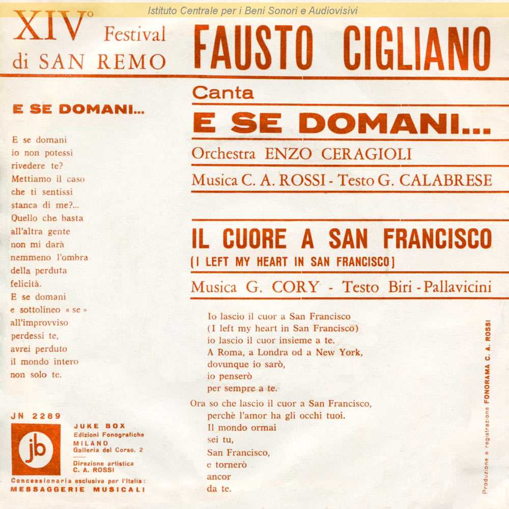 Note: Data matrici: 26 Gennaio / Lato A: "Festival di S. Remo 1964" / Biri è lo pseudonimo di Ornella Ferrari / Registrato negli Studi Fonorama di Milano / Sul retro di copertina i testi delle due canzoni / Distribuito da Messaggerie Musicali - Milano /