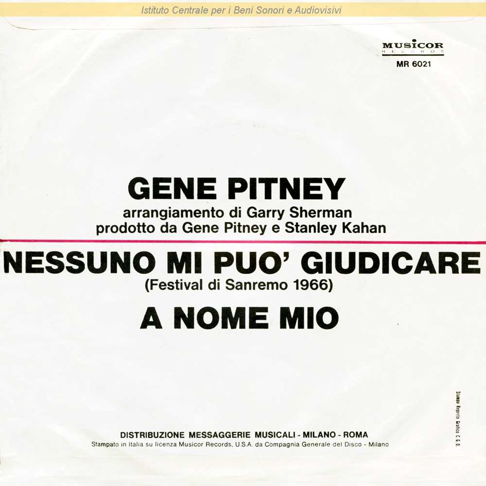 NESSUNO MI PUÒ GIUDICARE Autori: Luciano Beretta, Miki Del Prete, Daniele Pace, Mario Panzeri Arrangiatori: Garry Sherman Produttori: Stanley Kahan, Gene Pitney