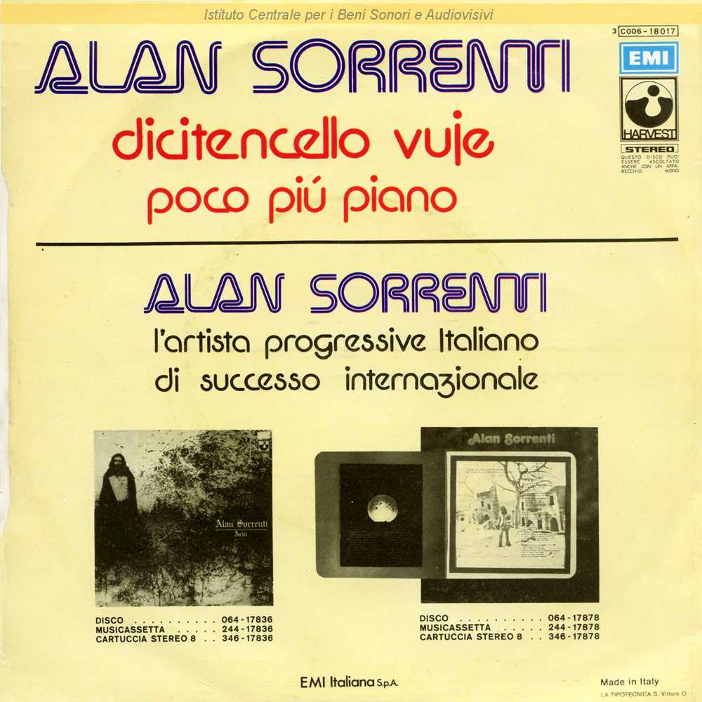 Autori: Alan Sorrenti Musicisti: Ettore De Carolis (flauti) , Ettore De Carolis (archi) Edizioni: Belriver